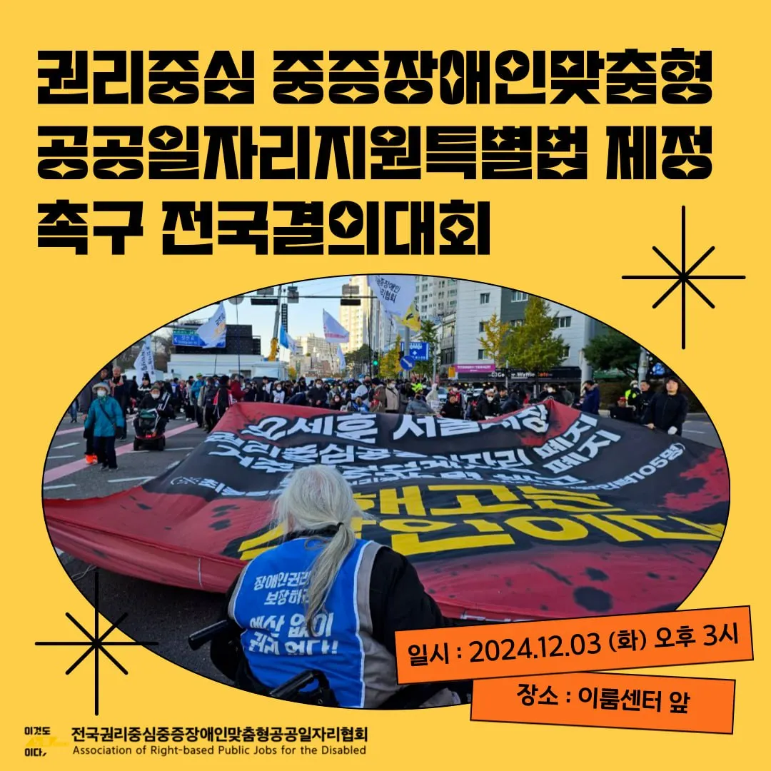 제목 | 권리중심중중증애이인맞춤형공공일자리 지원특별법 제정촉구 전국결의대회 |