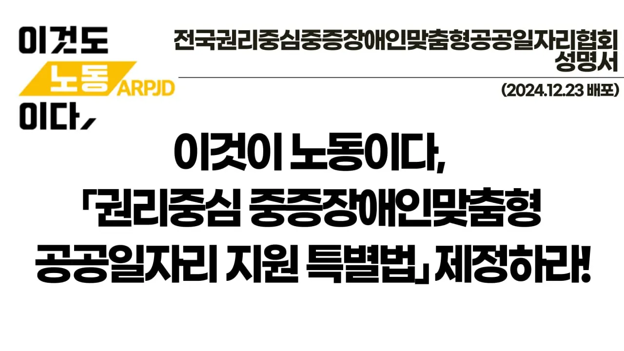 [성명]_(241223)_이것이 노동이다, 「권리중심 중증장애인맞춤형 공공일자리 지원 특별법」 제정하라!