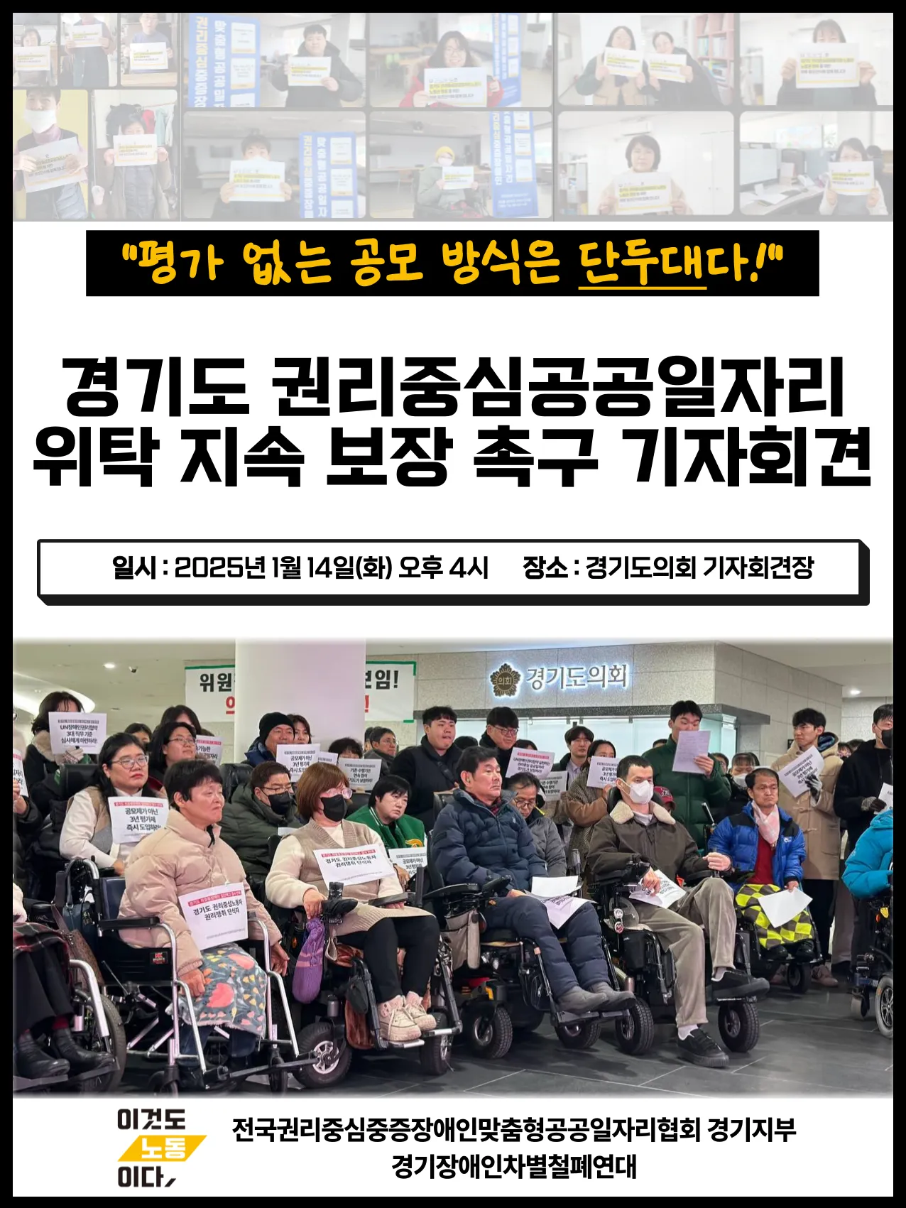“평가 없는 공모 방식은 단두대다!” 경기도 권리중심공공일자리 위탁 지속 보장 촉구 기자회견